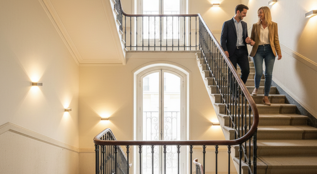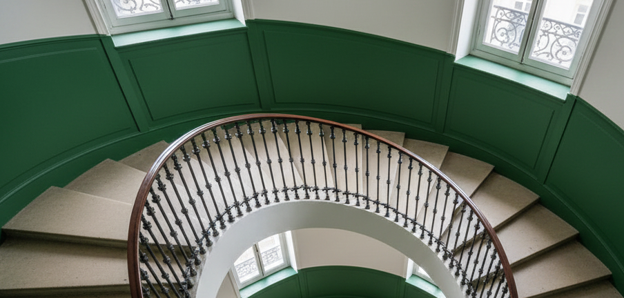 Les cages d'escalier des immeubles parisiens racontent l'histoire de la capitale. Moulures en stuc, rampes en fer forgé, carreaux de ciment d'époque : ces espaces communs constituent le premier contact avec votre immeuble. Pourtant, le temps fait son œuvre. Les peintures s'écaillent, les marches grincent, l'éclairage jaunit.