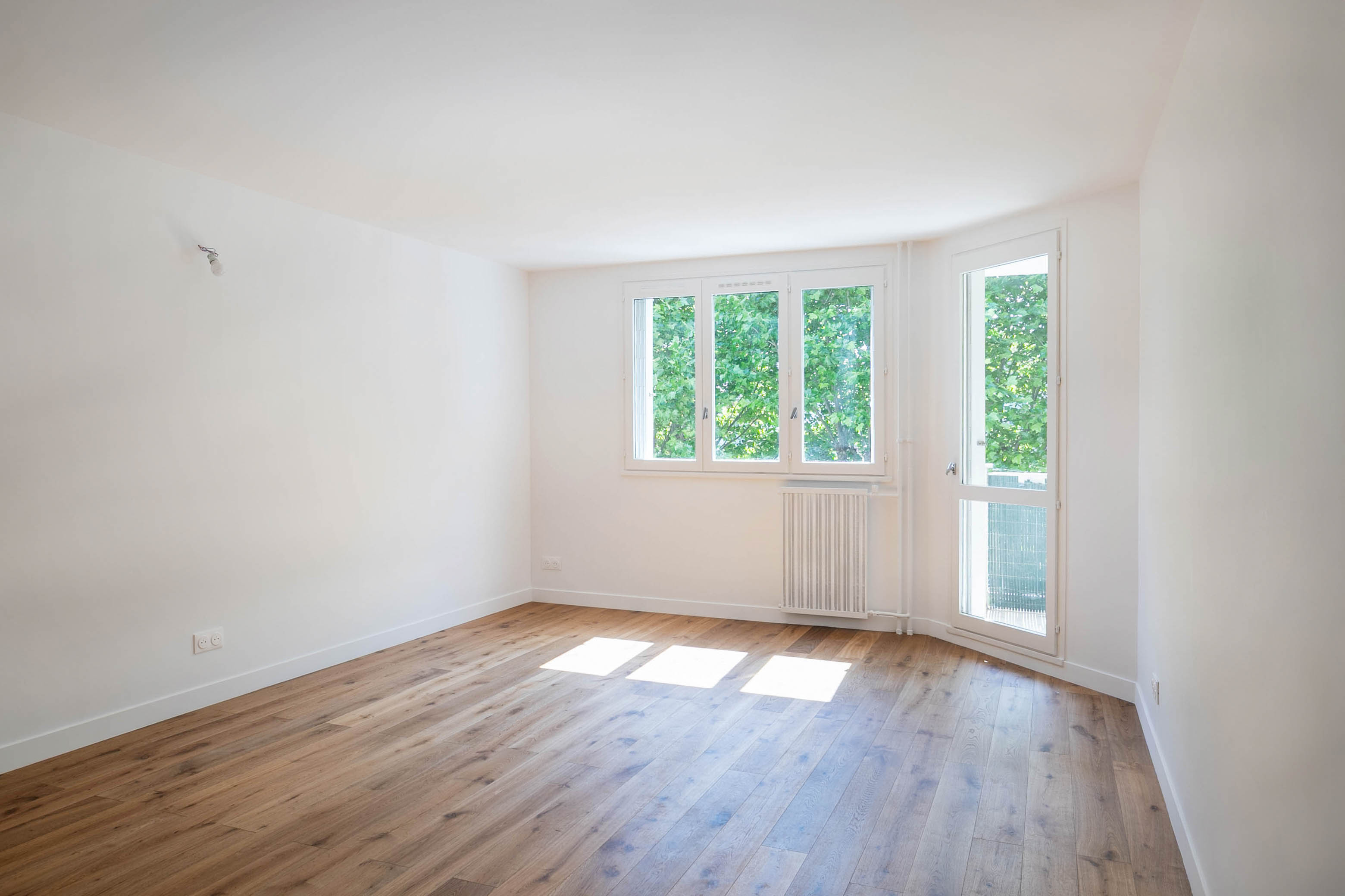 - Posé un parquet massif en chêne sur sous-couche liège, après ragréage complet,