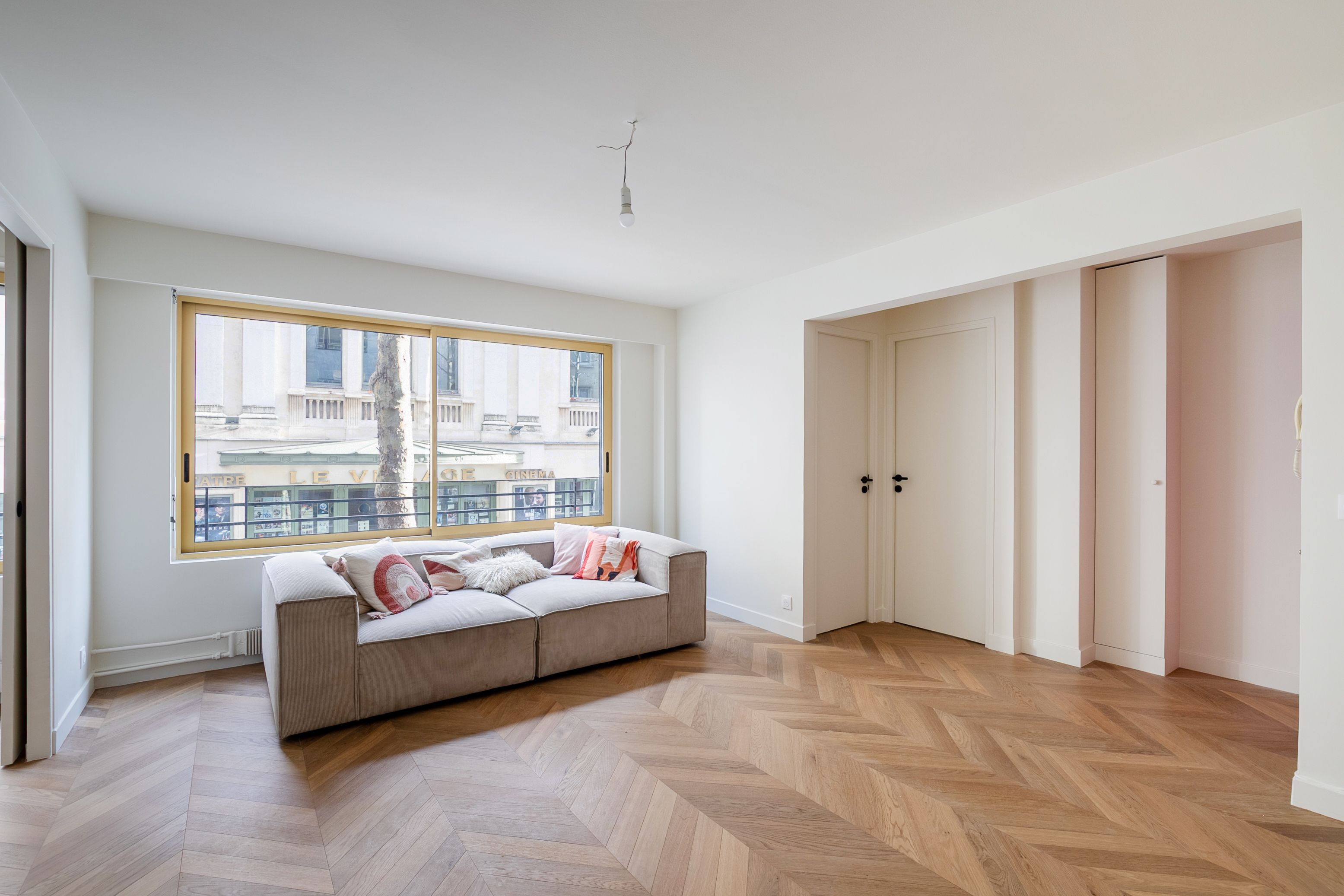 - installer un parquet massif en chêne en pointe de Hongrie, apportant un cachet haussmannien à l’appartement